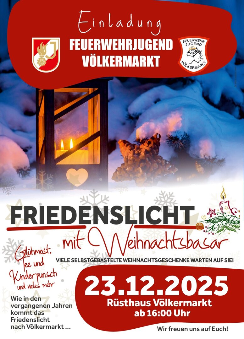 Friedenslicht mit Weihnachtsbasar der Feuerwehrjugend Völkermarkt
