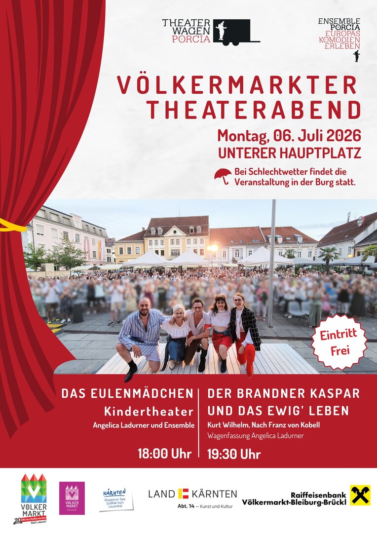 Am Montag, den 06. Juli 2026, verwandelt sich der Untere Hauptplatz in Völkermarkt in eine Bühne voller Emotionen, Witz und klassischer Theaterkunst!