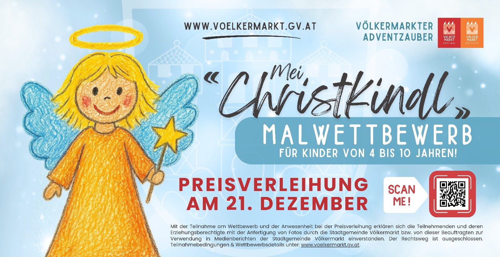 Dieses Jahr möchten wir sehen, wie DU dir das Christkind vorstellst! Mit goldenen Haaren, blauen Flügeln oder vielleicht mit einem funkelnden Stern in der Hand? Male deine Idee auf ein DIN A4 Blatt – ganz wie du willst! Ob mit Buntstiften, Wasserfarben, Kreide oder anderen Materialien: Deiner Fantasie sind keine Grenzen gesetzt.