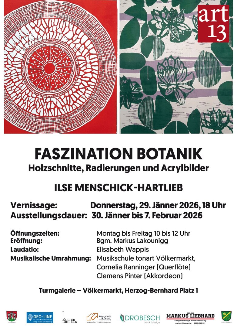 Ausstellung: FASZINATION BOTANIK Holzschnitte, Radierungen und Acrylbilder - ILSE MENSCHICK-HARTLIEB